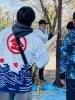 しめ縄の仕上げ作業では、上を通し下をくぐらせてねじりながらしっかりと締めていきます。この力作業は、網目がゆるまないように声をかけ合いながら進められ、見守る人々もその迫力に息を呑みました。