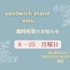 Instagramアカウントhttps://www.instagram.com/sandwichstand_emu/